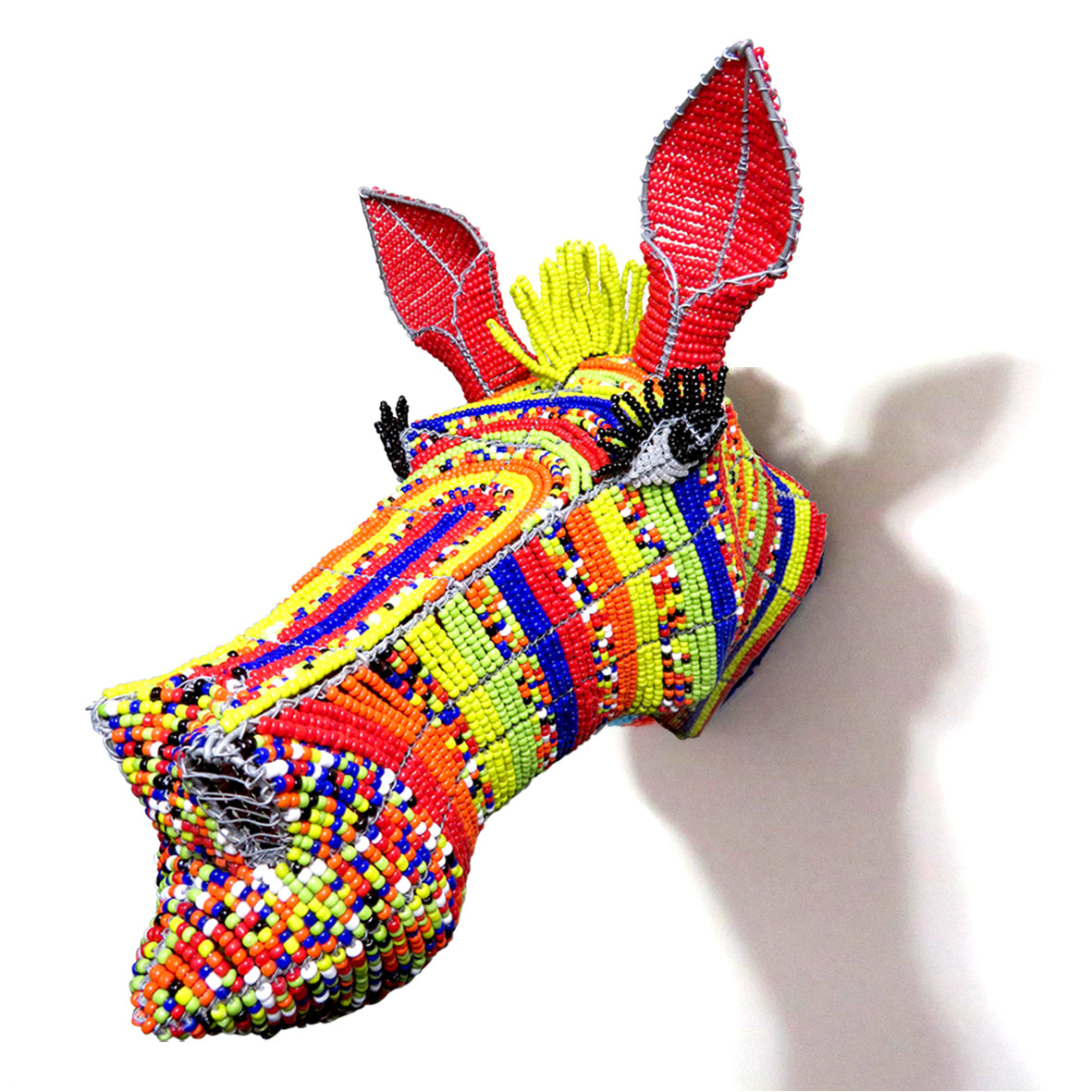This bright, bold, beaded zebra head is really fun and quirky. It's sure to turn heads in any interior with it's multi-coloured stripes and gorgeous long blue eyelashes! A real decor statement piece.