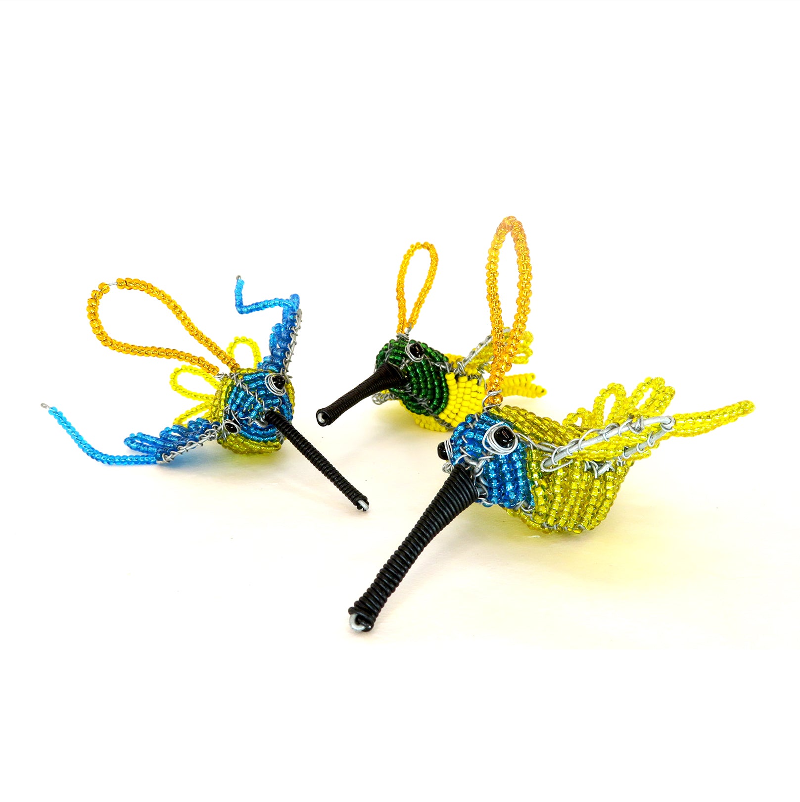 Small Beaded Sunbird decorations - Yellow