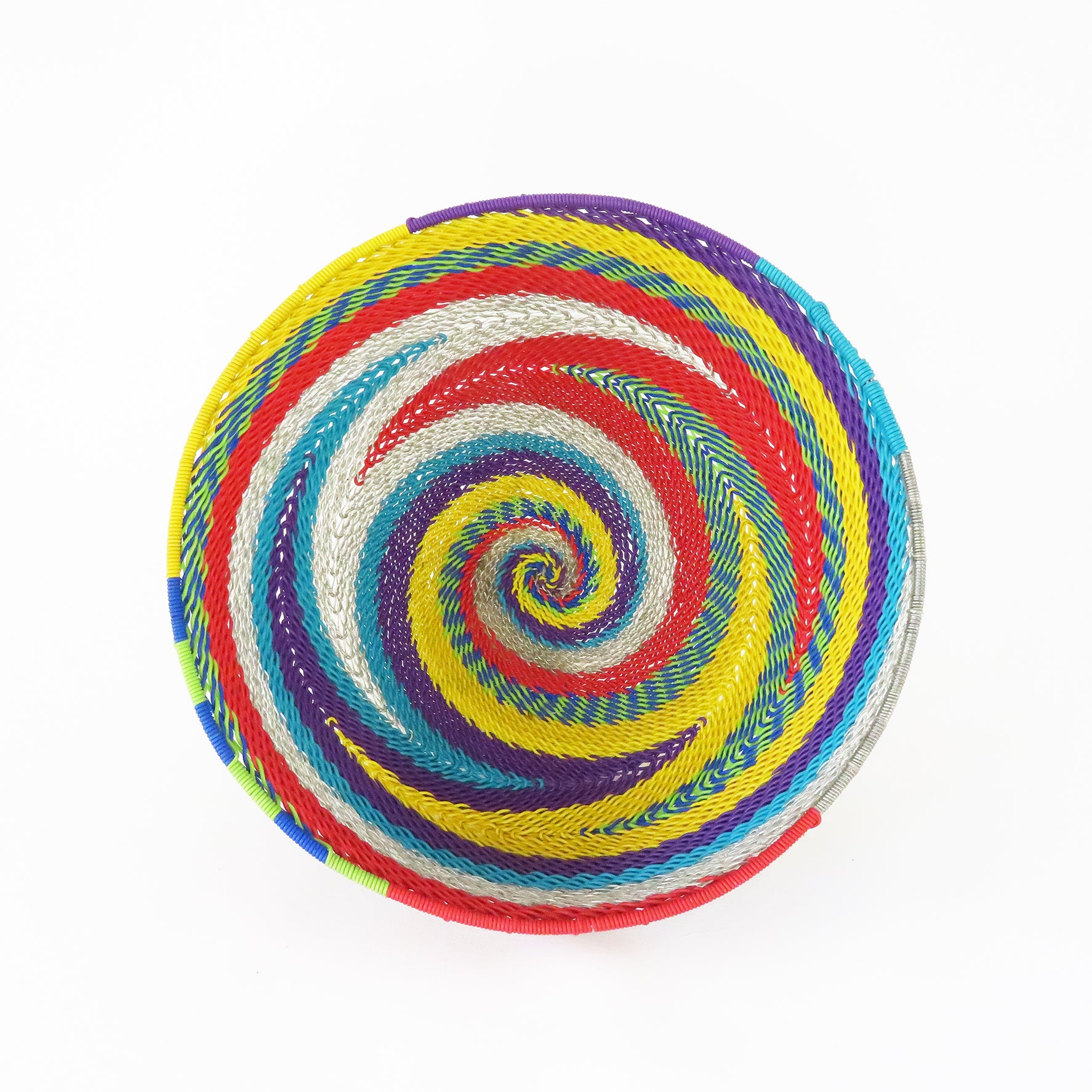 A perfect example of functional South African art. These woven baskets are made from brightly coloured telephone wire and are both functional and beautiful.