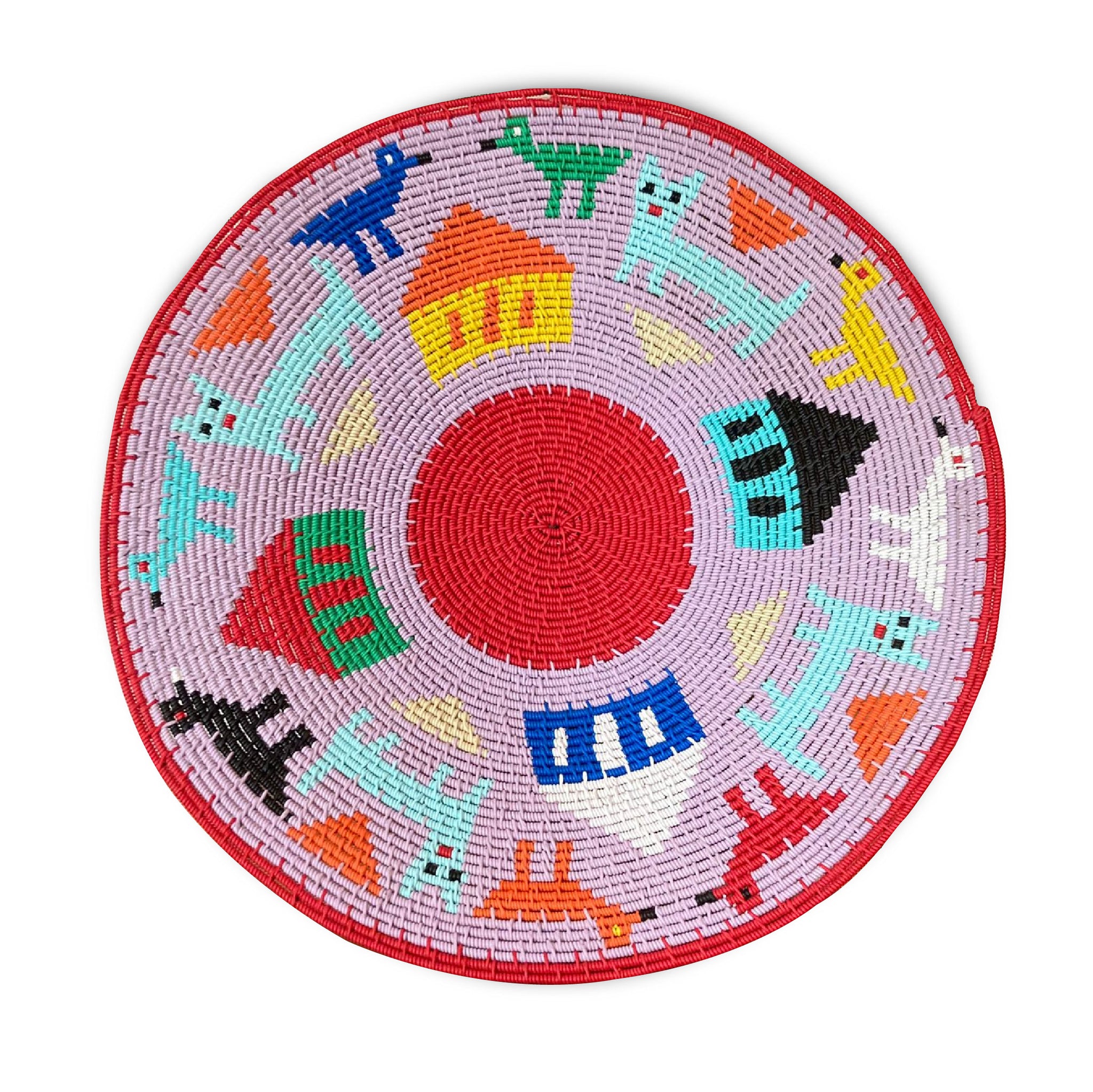 Woven Wire Shallow Decorative Basket - Pink and Red